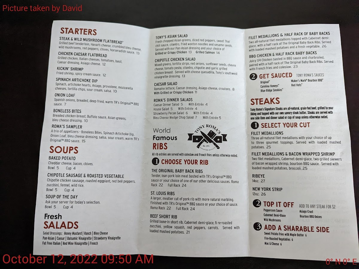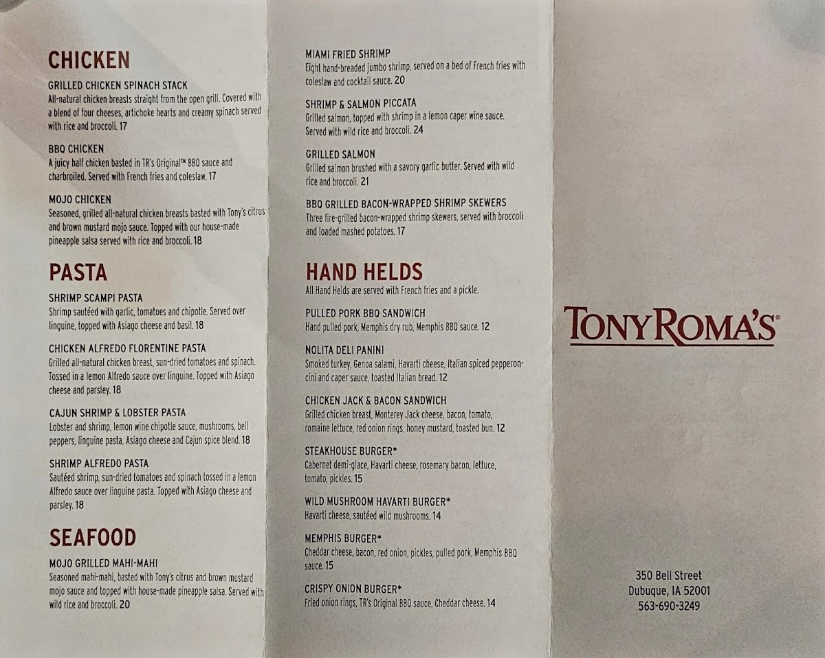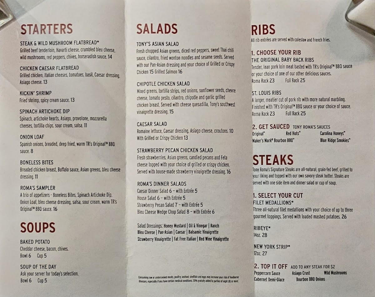 Whether you’re enjoying a relaxed lunch or a hearty dinner, Tony Roma's offers a memorable experience that keeps diners coming back.